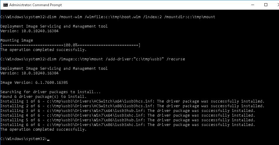 Open an elevated command prompt Now mount the WinPE boot image (boot.wim) to the c:\tmp\mount directory and integrate the USB 3.0 drivers into it using DISM commands (according to the guide How to add drivers to a Windows image):