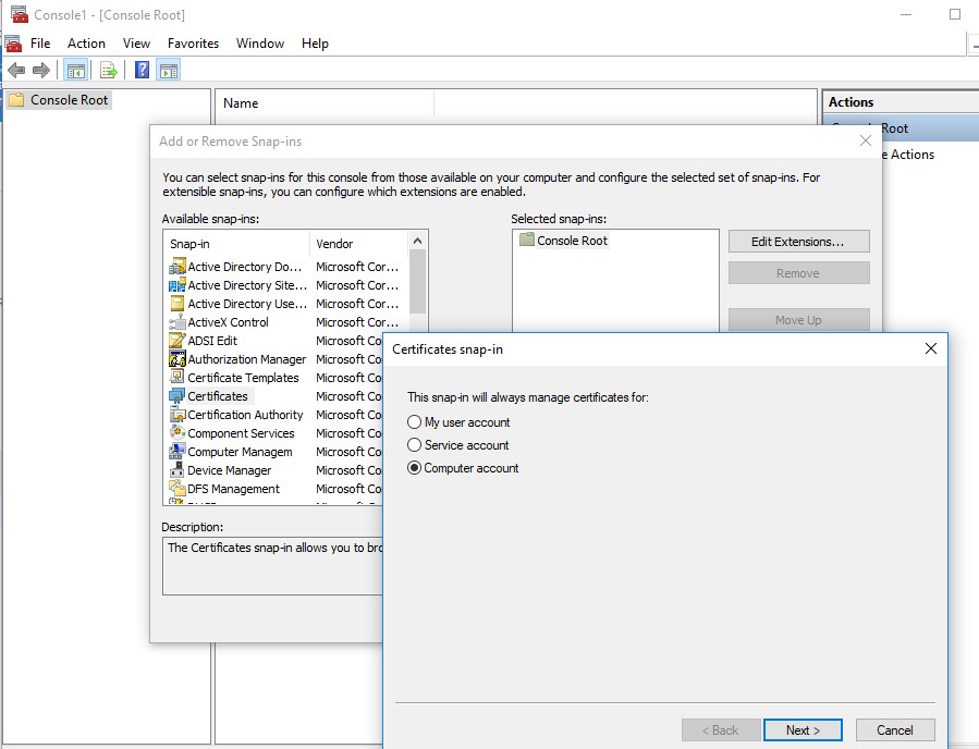 - Select that you want to manage certificates of local Computer account;