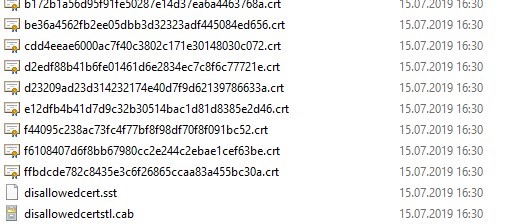 Regarding Testing/Validating the updates process: As of 11th August 2022, there are 20 Certs in the Disallowed.sst. They are listed by Thumbprint/Fingerprint (SHA1?) only.