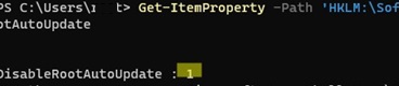 Get-ItemProperty -Path 'HKLM:\Software\Policies\Microsoft\SystemCertificates\AuthRoot' -Name DisableRootAutoUpdate