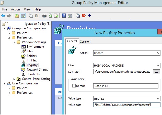 - Value data: file://\\fr-dc01\SYSVOL\woshub.com\rootcert\