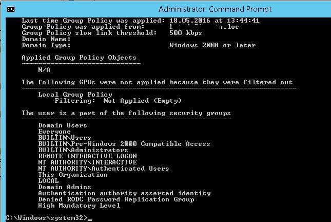 – gpresult /r –> Server is confirmed not in the group (Normal)