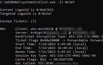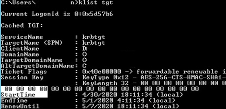 At this point, a new Kerberos ticket will be issued to the user. You can check if your TGT ticket has been updated: