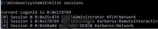 This command shows that all users are Kerberos-authenticated (except the built-in local Administrator, who is always authenticated using NTLM).