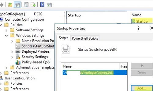 %~dp0 parameter is used.Copy your *.bat (and *.reg if you need to import) to the Netlogon directory on the domain controller ( \\woshub.loc\netlogon).