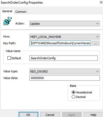 - Thus, you have created a Group Policy to deploy your registry key. The next time the Group Policy settings are updated on the target computers, the value of the SearchOrderConfig registry key will change to 0.If the policy doesn’t apply to the client, you can use the GPResult tool for diagnostics.