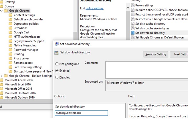 - Change the location of the download folder: Set download directory: c:\temp\downloads;