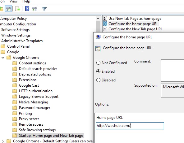 Set a home page: Google Chrome -> Startup, Home page and New Tab page-> Configure the home page URL: https://woshub.com/