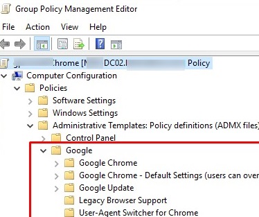 gpmc.msc) and edit any existing GPO (or create a new one). Make sure that a new Google folder containing several new subsections (Google Chrome, Google Chrome – Default Settings (users can override), Google Update, Legacy browser support, User-agent switcher for Chrome) appeared both in the User and Computer sections of Policies -> Administrative Templates.