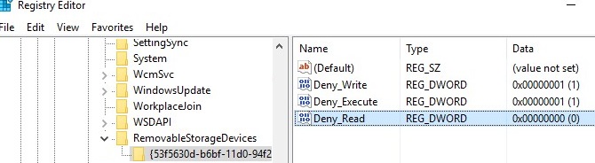 | Removable Disks: Deny read access | {53f5630d-b6bf-11d0-94f2-00a0c91efb8b} | Deny_Read |