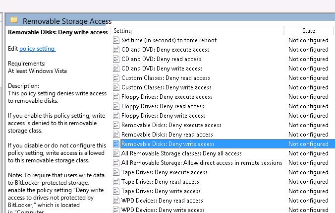 For example, to prevent writing data to USB flash drives and other types of USB removable storage, you should enable the policy Removable Disk: Deny write access.