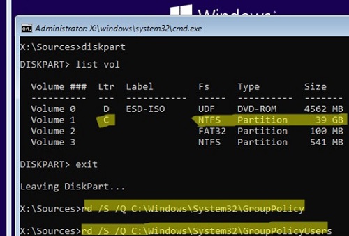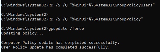 RD /S /Q C:\Windows\System32\GroupPolicy