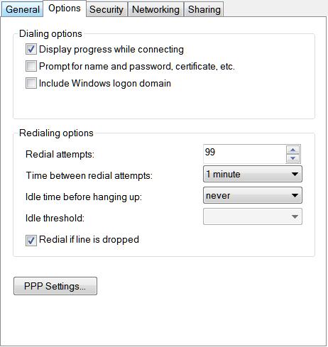 - RedialOnLinkFailure=1 — Redial if connection fails? 1 – yes, 0 – no