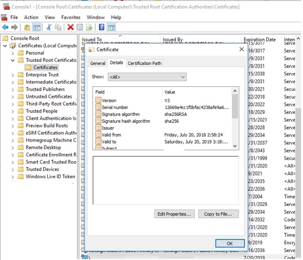 Since the certificate we created is self-signed, Windows doesn’t trust it by default. When you check the certificate store with the Sigcheck utility, this certificate will be displayed as untrusted, because it is not listed in the list of Microsoft Trusted Root Certificates (this list needs to be updated periodically).
