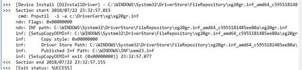 Pnputil –i –a C:\DriverCert\xg20\xg20gr.inf