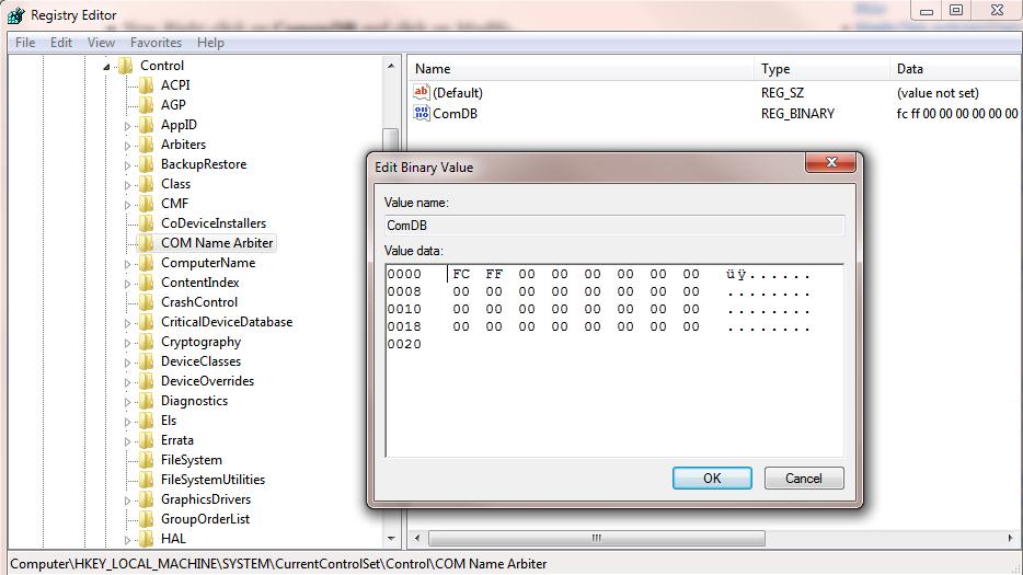 - If you have to reset all COM port bindings, change the value of ComDB to 0;Note. You can see the complete list of COM ports connected in Windows under the registry key HKEY_LOCAL_MACHINE\HARDWARE\DEVICEMAP\SERIALCOMM. The registry entries under the SERIALCOMM can only be present only when underlying devices are connected and ready. This subkey is part of the HARDWARE key, and it is recreated each time the system starts.