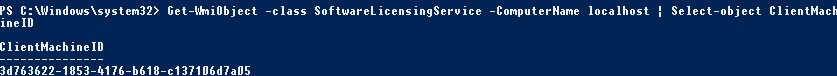 Get-WmiObject -class SoftwareLicensingService -ComputerName salarypc121 | Select-object ClientMachineID