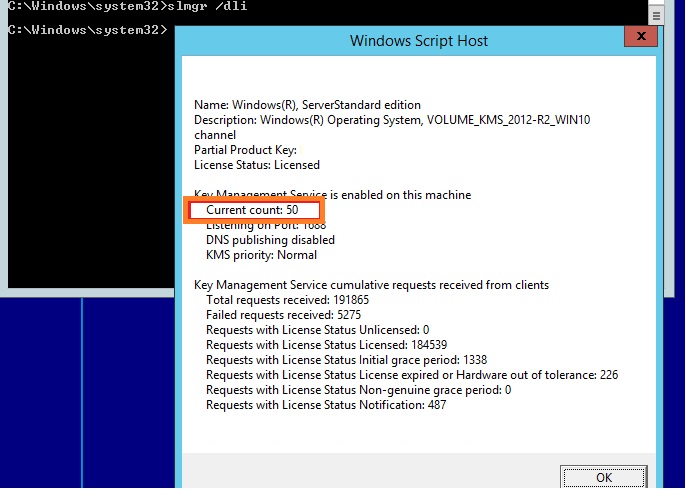 In case if you try to activate the client OS on the KMS server and the count doesn’t increase, it can be caused by the following reasons: