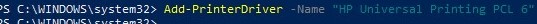 Add-PrinterDriver -Name "HP Universal Printing PCL 6"