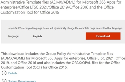 Download Group Policy Administrative Templates for Microsoft Office/Microsoft 365 App