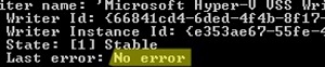 Restarting the Virtual Machine Management service should reset the status of VSS Writer on the Hyper-V host.