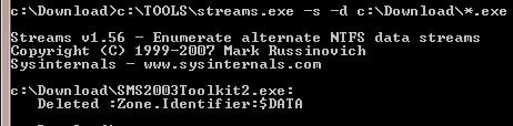 c:\TOOLS\streams.exe -s -d c:\Download\*.exe