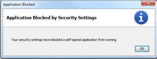 Your security settings have blocked a self-signed application from running.