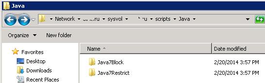 Create files with the indicated contents in \\woshub.com\sysvol\woshub.com\scripts\Java\Java7Restrict folder.