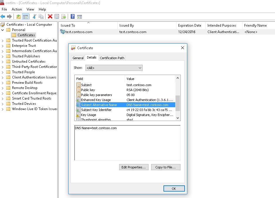 adfs1.contoso.com - Subject Alternative Name (DNS):