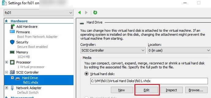 Expanding VM Hard Disk in Hyper-V