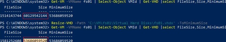 Resize-VHD -Path 'C:\VM\fs01\VHD\fs01.vhdx' -ToMinimumSize