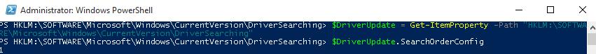 $DriverUpdate = Get-ItemProperty –Path ‘HKLM:\SOFTWARE\Microsoft\Windows\CurrentVersion\DriverSearching’