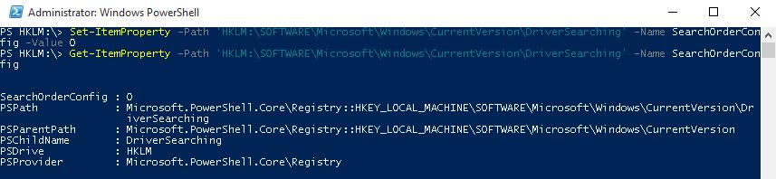 cd HKLM:\SOFTWARE\Microsoft\Windows\CurrentVersion\DriverSearching