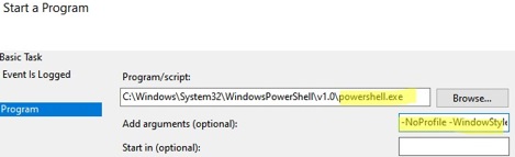 Argument:-NoProfile -WindowStyle hidden -ExecutionPolicy Bypass -Command &{Enable-NetAdapter -Name TPLinkWiFi -confirm:$False}