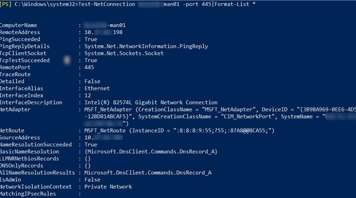 Test-NetConnection ny-man01 -port 445|Format-List *