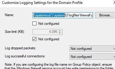 You can debug your Windows Defender Firewall rules on clients’ computers by enabling logging in %systemroot%\system32\logfiles\firewall\pfirewall.log. By default, network connection logging is disabled in Windows. You can log only rejected packets (Log dropped packets) or packets that were allowed by firewall rules (Log successful connections).