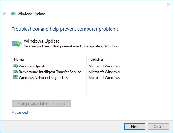 - Windows 10 – wu10.diagcab (https://aka.ms/wudiag ) or run the local version of the tool: Start -> Settings -> Updates and Security -> Troubleshoot -> Additional Troubleshooters-> Windows Updates (Resolve problems that prevent you from updating Windows);For quick access the Windows troubleshooting tools, you can use the ms-settings URI command: