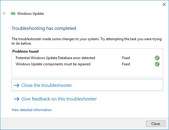 Wait for the Windows Update Troubleshooter to scan your system and attempt to automatically fix any errors in the Windows Update and related components.