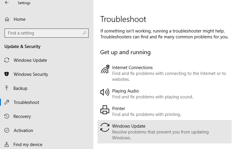 Using Windows Update Troubleshooter to Fix Update Issues