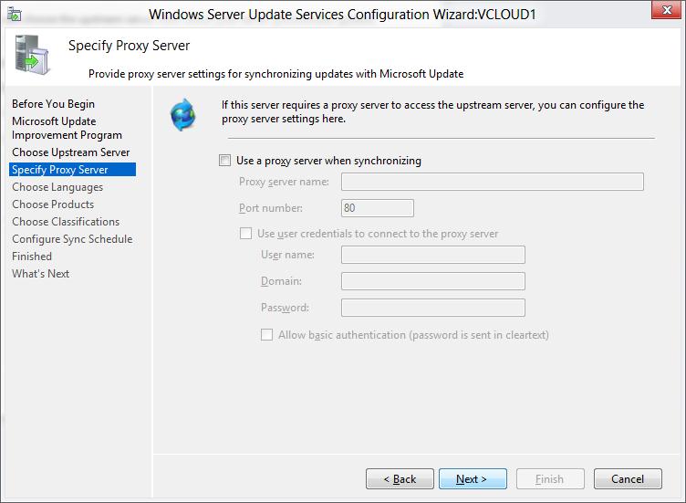 Specify whether the WSUS server will download updates from the Microsoft Update site directly (Synchronize from Microsoft Update) or if it should receive them from an upstream WSUS server (Synchronize from another Windows Update Services server). Downstream WSUS servers are usually deployed at remote sites with a large number of clients (300+) to reduce the load on the WAN link.