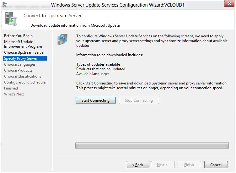 Next, check the connection to the upstream update server (or Windows Update). Click Start Connecting.
