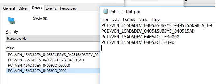 - Copy the values of the hardware identifiers associated with the device (in the format
