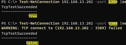 Test-NetConnection 192.168.3.102 -port 3389 |select TcpTestSucceeded