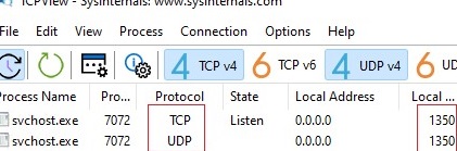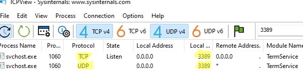 Note that the UDP RDP port number also automatically changed to 1350 (you can check this with the TCPView tool).