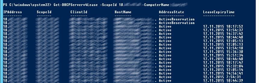 Get-DHCPServerv4Lease -ScopeId 192.168.12.0 -ComputerName be-dhcp1