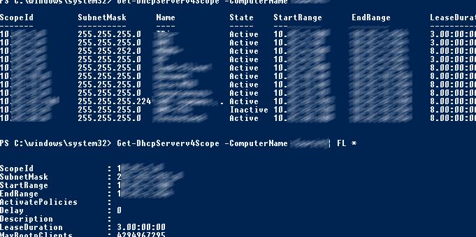 Get-DhcpServerv4Scope –ComputerName be-dhcp1| FL *