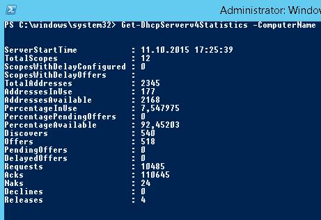 Get-DhcpServerv4Statistics -ComputerName be-dhcp1