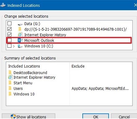 - If you use Outlook with PST files on your computer, then when you index them, the size of the Windows.edb file grows in proportion to the size of the PST files. This can lead to running out of disk space and performance problems. This can lead to insufficient disk space and slow computer performance. In this case, Microsoft recommends excluding Outlook from the list of indexed items.