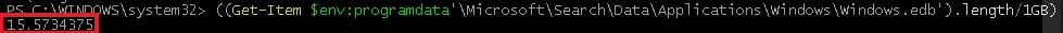 ((Get-Item $env:programdata'\Microsoft\Search\Data\Applications\Windows\Windows.edb').length/1GB)