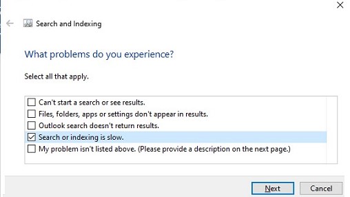 msdt.exe -ep SystemSettings_Troubleshoot_L2 -id SearchDiagnostic. In the list of issues, select “Search or indexing is slow”. The troubleshooting wizard will then try to get the Windows Search service back to normal state; - Try to index only the content you need. Exclude items you are not looking for from the search index. Click the “Modify” button in the indexing settings and in the “Indexing Location” window, disable paths and apps that you don’t want to be indexed. After changing the index path settings, you need to rebuild the search index each time (Advanced -> Rebuild); Also note that Windows.edb file size grows much faster in Windows 10/8.1 than in Windows 7. The fact is that in modern Windows versions, all file contents are indexed, regardless of their size. And Windows 7 indexed only the first part of large documents.